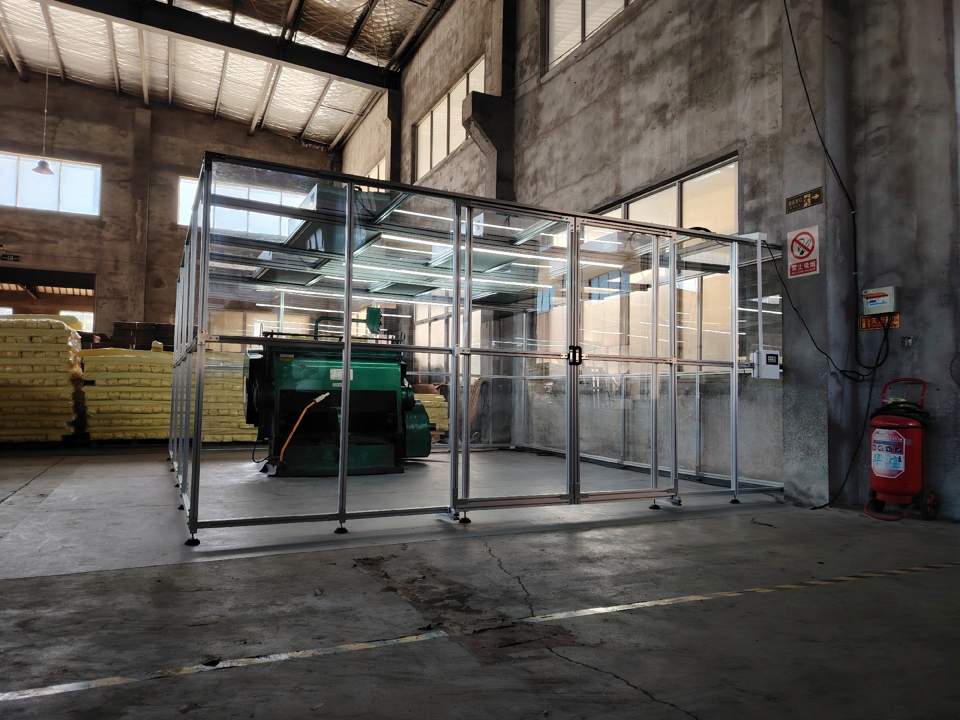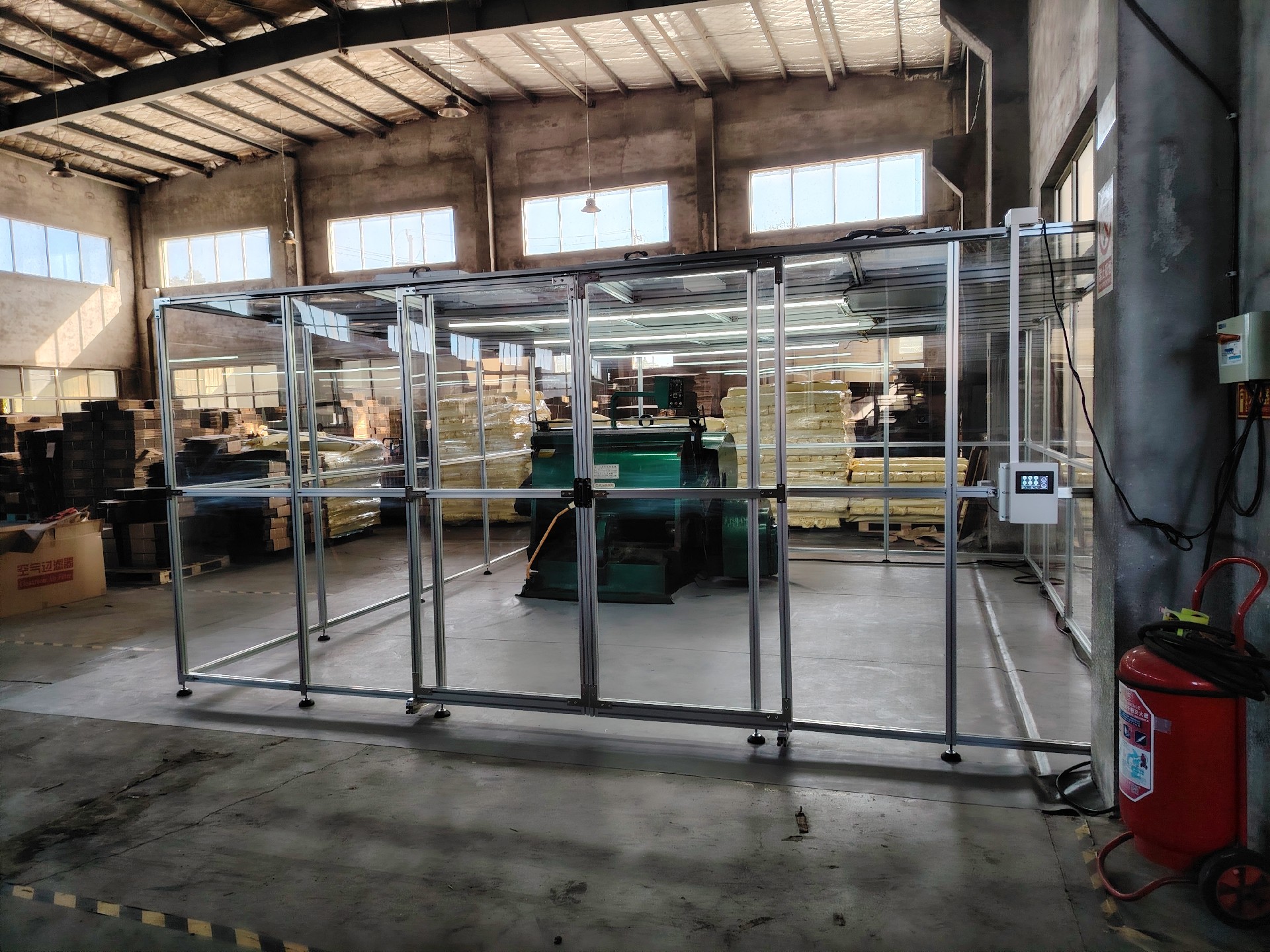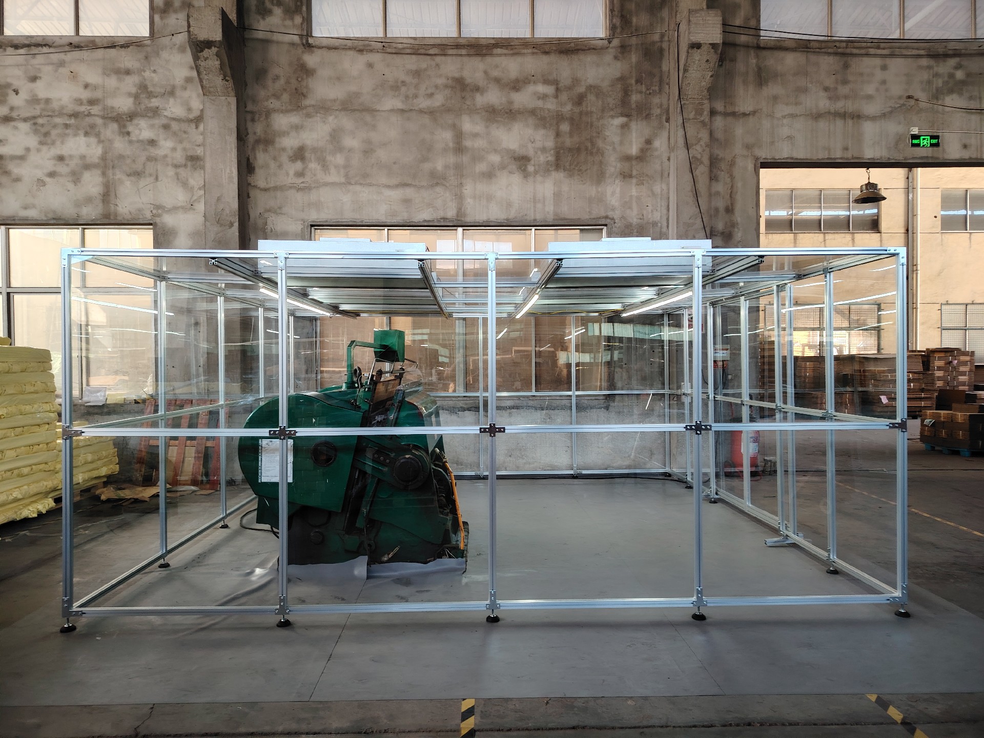 潔凈棚尺寸為5000*5000*2200主體材質選用鋁型材,隔離材質選用透明度高的亞格力板,搭配六個百級凈化單元,經檢測公司檢測后可達千級標準。